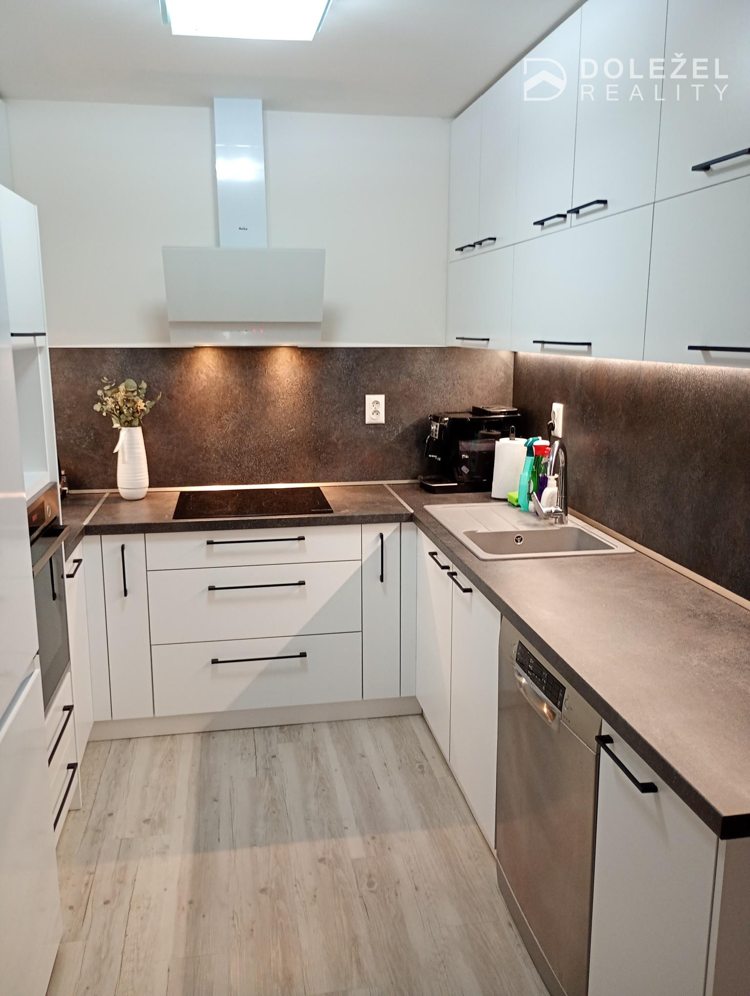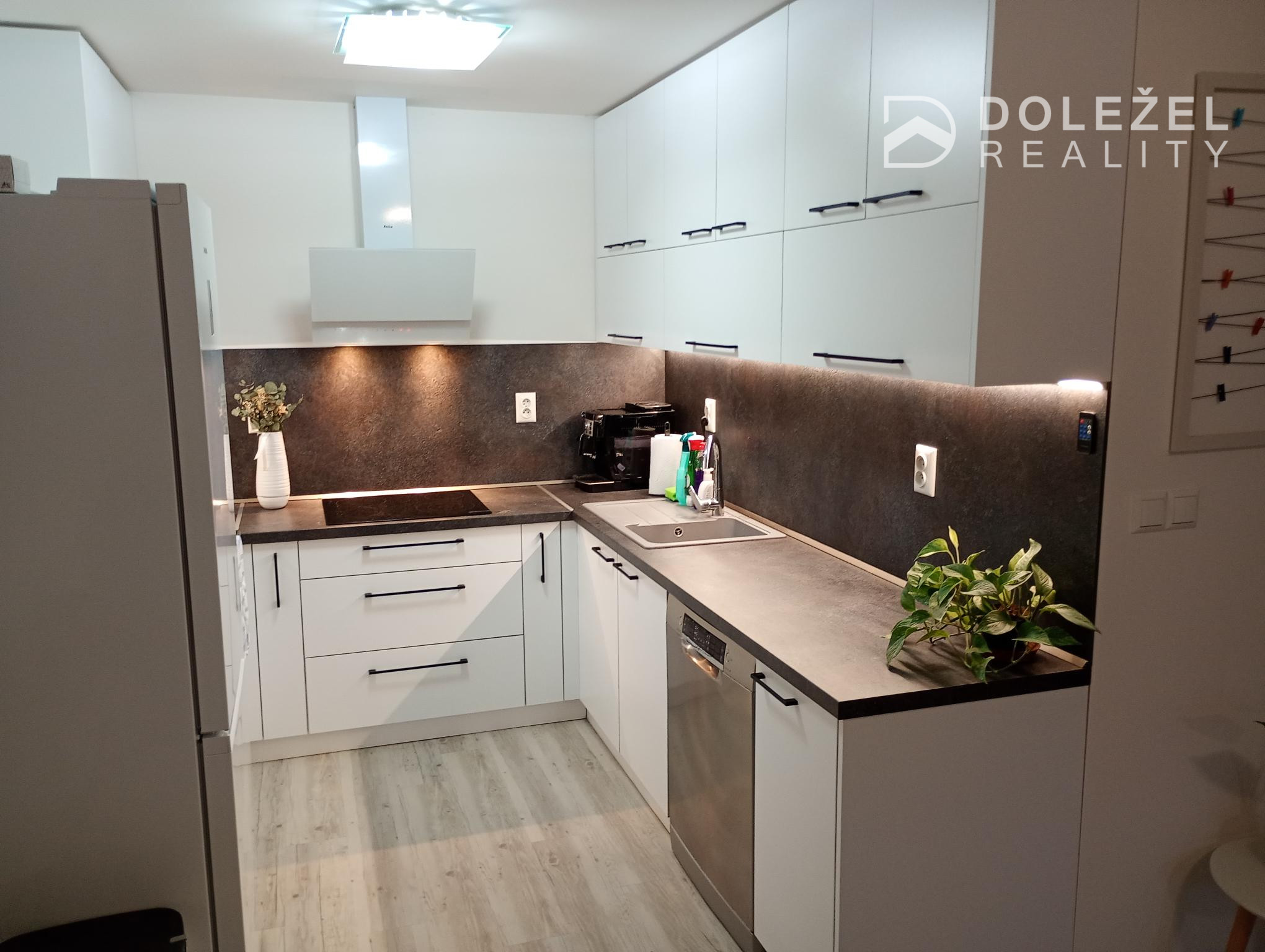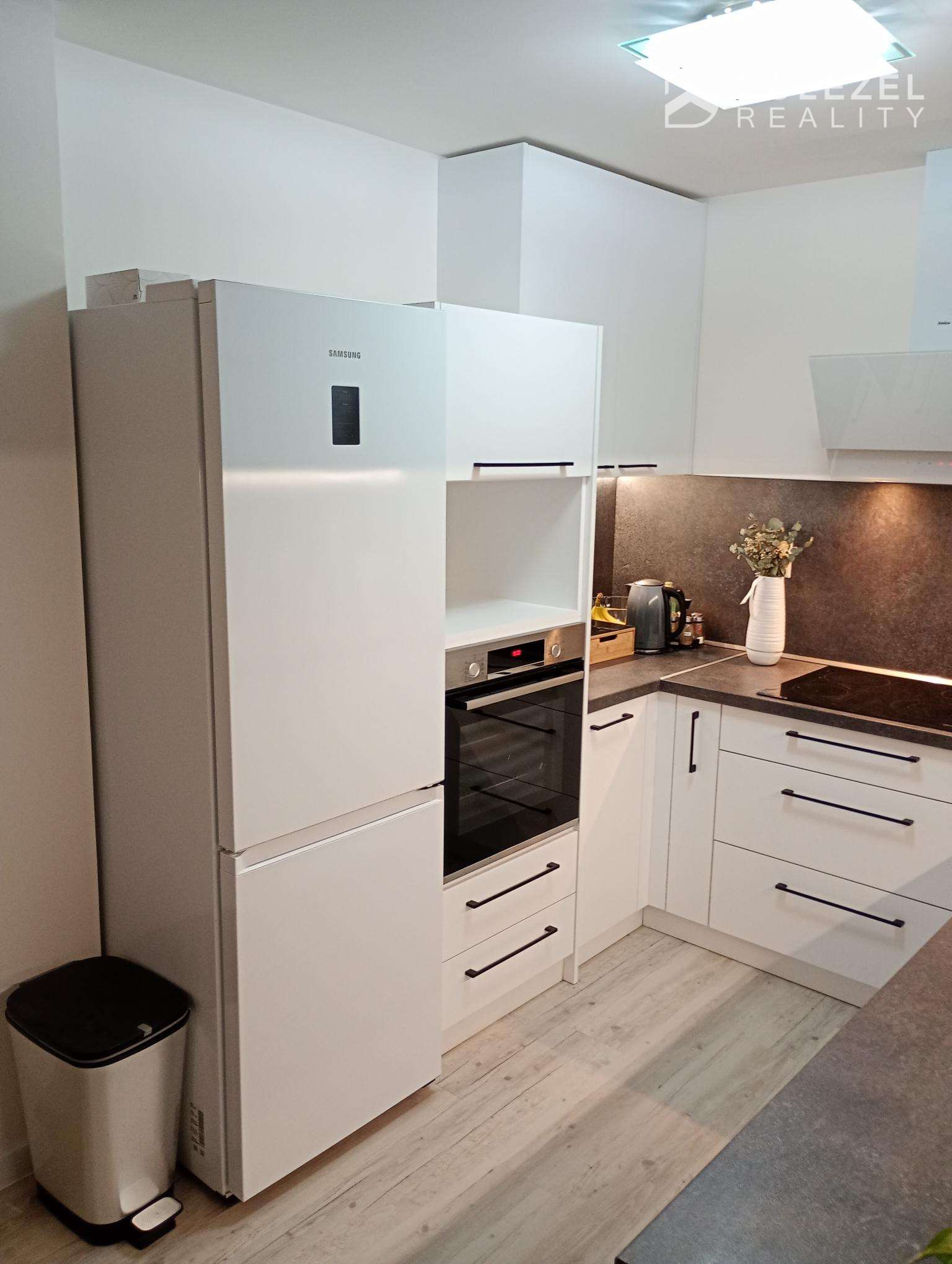 - nová kuchynská linka s posvietení, el. varná doska, vstavané el. rúra, digestor, chladnička,