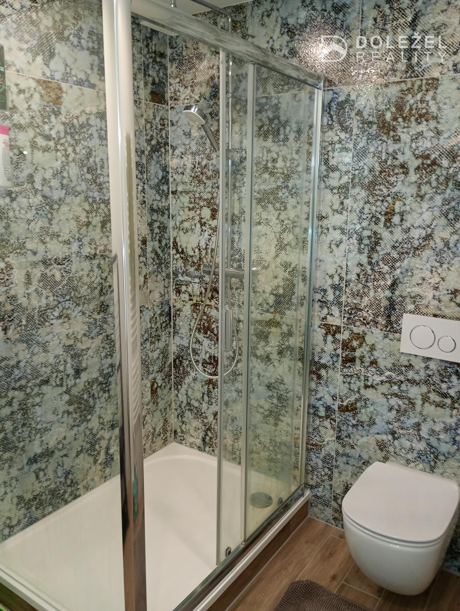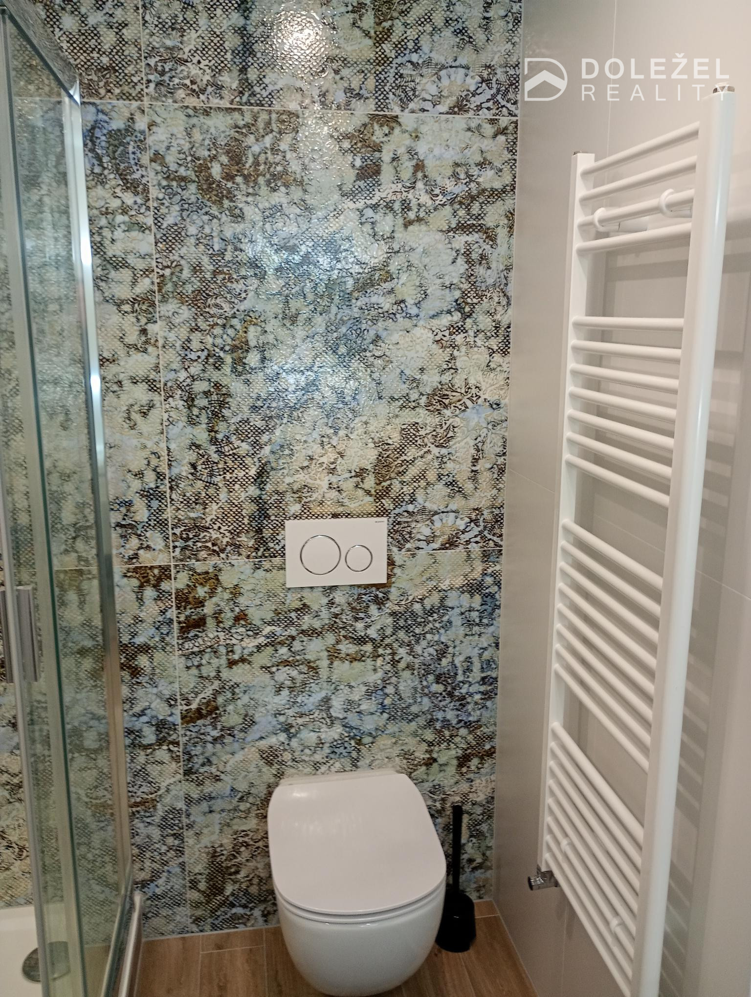 - kúpeľňa so sprchovacím kútom, umývadlo, kúpeľňový nábytok, kúpeľňový radiátor, WC – geberit,