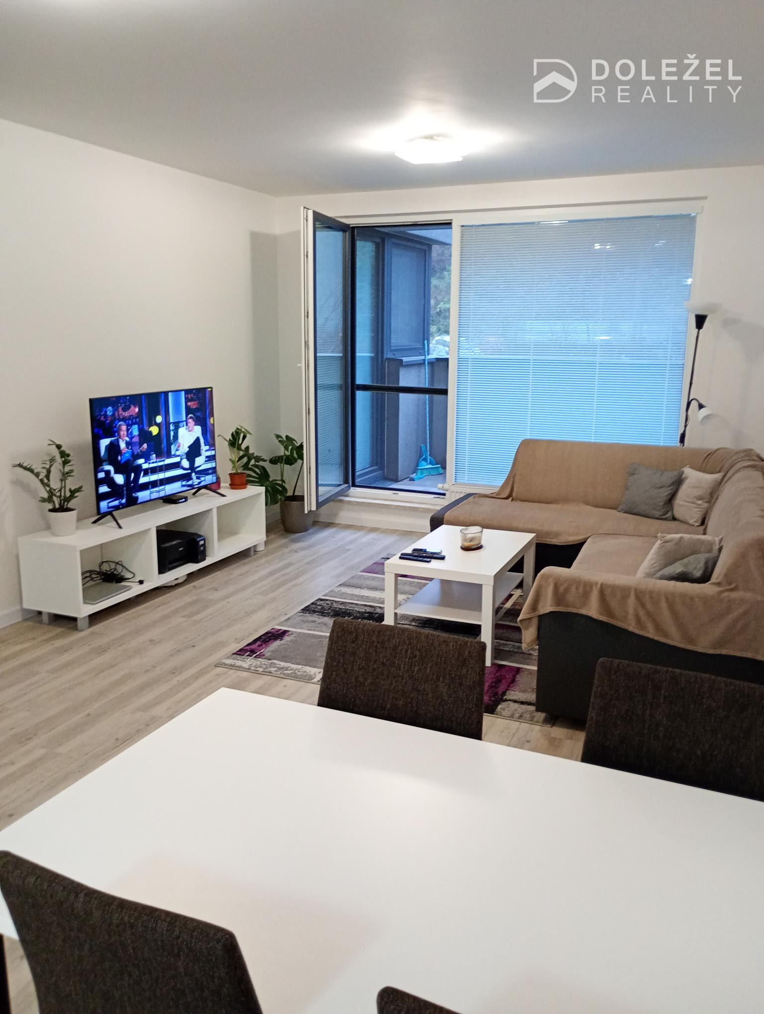 - rozkladacia gaučová súprava, konferenčný stolík, TV stolík + TV,